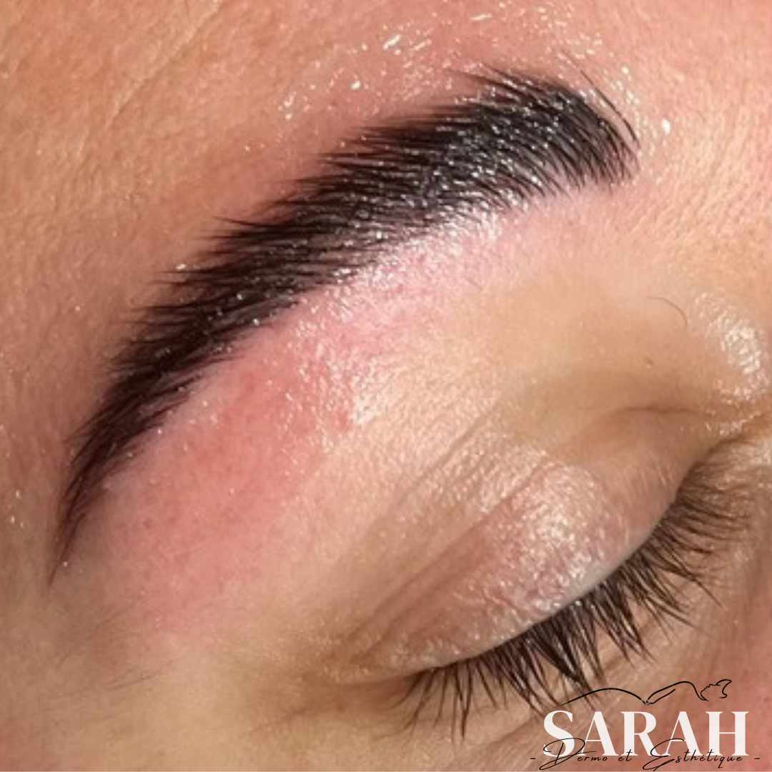 Attention, le brow lift n’est pas fait pour les sourcils clairsemés, il faut déjà avoir une bonne base de poils sinon l’effet sera peu voire pas visible. Si vous avez des trous ou pas assez de poils, optez plutôt pour un maquillage permanent des sourcils.